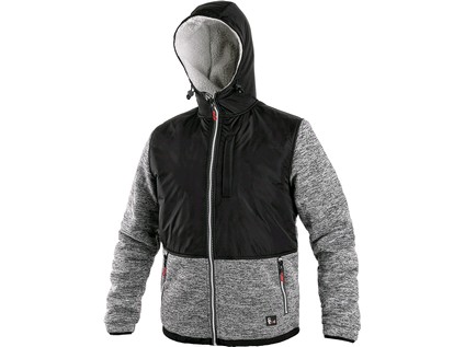 Pánská bunda z pleteniny, teplou podšívkou, kombinace materiálů, kapuce napevno, stahování v dolním okraji, rukávy zakončeny gumičkou, reflexní doplňky, náprsní kapsa na krytý zip, 2 spodní kapsy na zip.