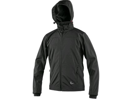Softshellová bunda s odepínací kapucí, odolná proti vodě a větru, zapínaní na zip, větrání v podpaží, hlavicové rukávy s regulovatelnými manžetami, stahování v dolním okraji, 2 boční kapsy na zip, TPU membrána, odolnost materiálu proti průniku vody 10 000 mm mimo oblast švů, paropropustnost 3 000 g/m2/24h.