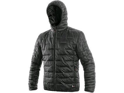 Pánská zateplená bunda s kapucí a reflexními doplňky, hlavicové rukávy, spodní lem do gumičky, manžety do gumy, 2 spodní kapsy na zip.