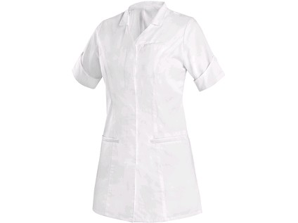 Dámská halena s krátkým rukávem, princesový střih, kryté zapínání na knoflíky, 3 přední kapsy zdobené saténovým lemováním. Doporučené použití: wellness, kosmetické salóny, soukromé ordinace, kliniky a velká zdravotnická zařízení, záchranné a zdravotní dopravní služby, lázeňská zařízení, ústavy sociální péče, lékárny, školy se zdravotnickým a gastro zaměřením.