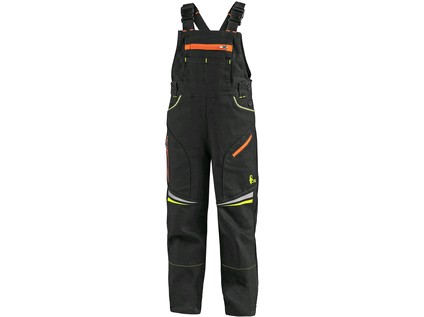 Dětské zahradníky CXS GARFIELD, černé s HV žluto/oranžovými doplňky
