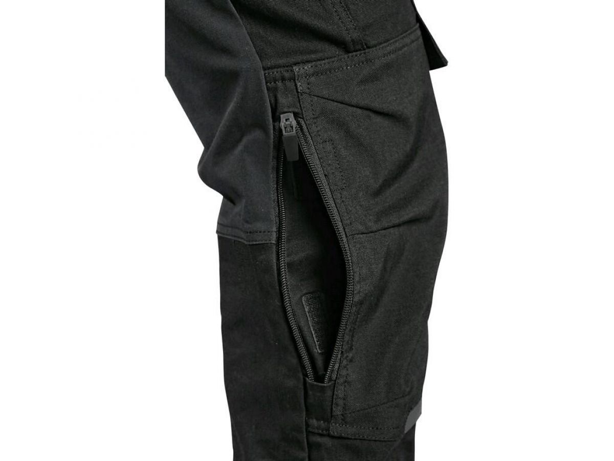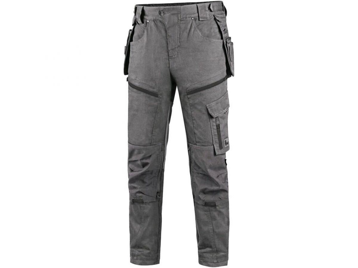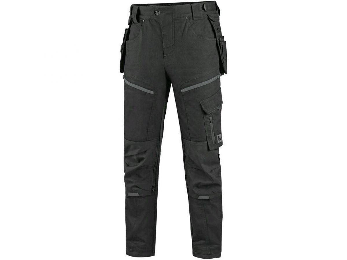 Pánské pracovní kalhoty moderního střihu slim-fit. Kombinace kvalitního směsového materiálu s elastanem a 4-way stretch materiálu v exponovaných místech umožňuje volný a pohodlný pohyb. Vybavení kalhot: flexibilní pas s možností upravení velikosti a poutky na opasek, na vnitřní straně pasu protiskluzový potisk, 2 přední kapsy, 2 odnímatelné kapsy na nářadí vyztuženy materiálem CORDURA®, stehenní zipové kapsy s možností ventilace, boční kapsa se zipovou kapsou, 2 zadní kapsy (jedna zipová) vyztuženy materiálem CORDURA®, kapsa na skládací metr s dalšími přihrádkami, ergonomicky tvarovaná kolena zesílena materiálem CORDURA® s možností vložení kolenních výztuh bočním vkládáním a ventilací, kapsa na ID kartu, spodní část nohavic vyztužena materiálem CORDURA®, reflexní doplňky. Kalhoty umožňují prodloužení střihu na vyšší postavu uvolněním švu na nohavicích. Doporučené použití: strojírenství, stavebnictví, lehký průmysl, automobilový průmysl, logistika, skladování, spedice, autoservisy, údržba, montáže, zemědělství, zahrada, hobby a volný čas.