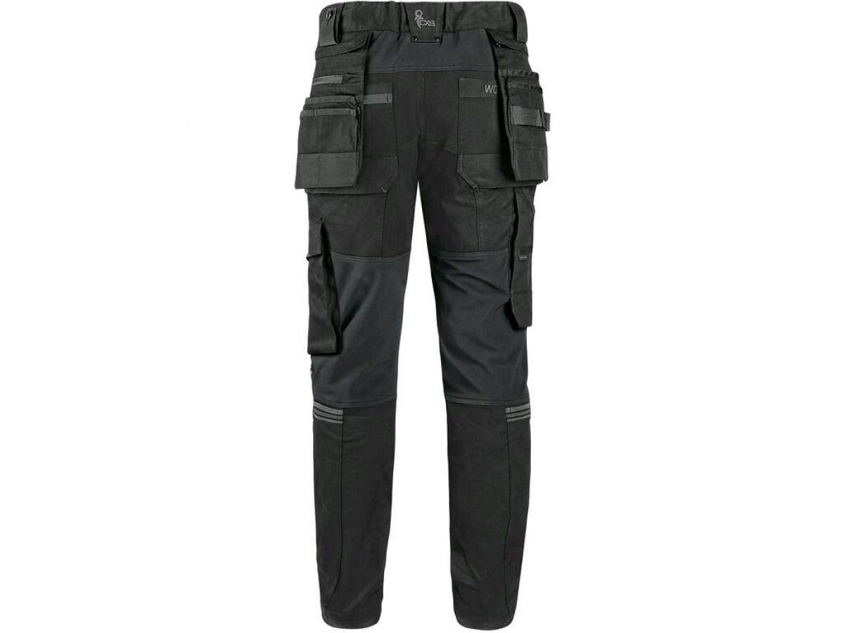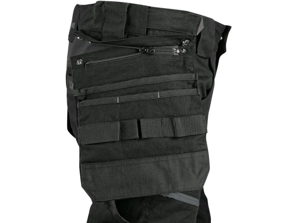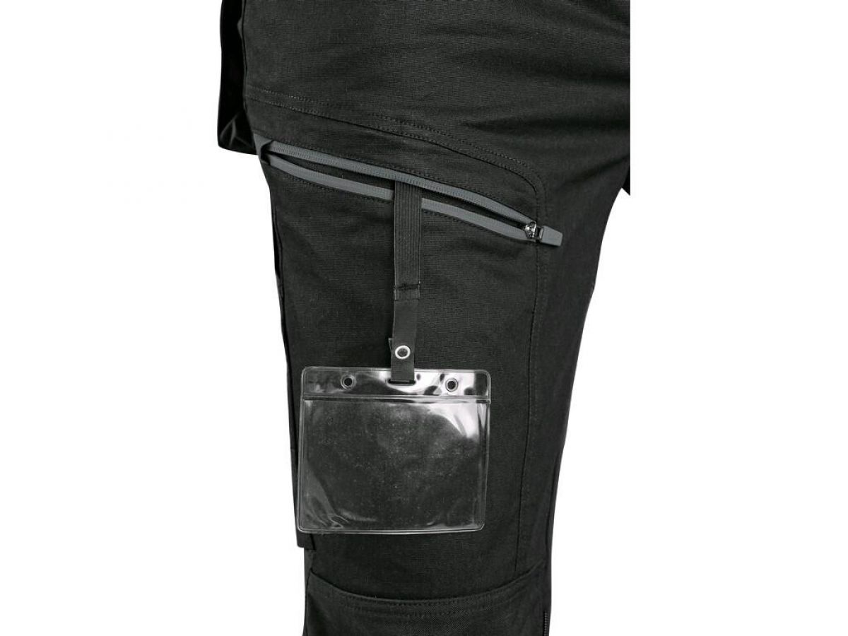 Pánské pracovní kalhoty moderního střihu slim-fit. Kombinace kvalitního směsového materiálu s elastanem a 4-way stretch materiálu v exponovaných místech umožňuje volný a pohodlný pohyb. Vybavení kalhot: flexibilní pas s možností upravení velikosti a poutky na opasek, na vnitřní straně pasu protiskluzový potisk, 2 přední kapsy, 2 odnímatelné kapsy na nářadí vyztuženy materiálem CORDURA®, stehenní zipové kapsy s možností ventilace, boční kapsa se zipovou kapsou, 2 zadní kapsy (jedna zipová) vyztuženy materiálem CORDURA®, kapsa na skládací metr s dalšími přihrádkami, ergonomicky tvarovaná kolena zesílena materiálem CORDURA® s možností vložení kolenních výztuh bočním vkládáním a ventilací, kapsa na ID kartu, spodní část nohavic vyztužena materiálem CORDURA®, reflexní doplňky. Kalhoty umožňují prodloužení střihu na vyšší postavu uvolněním švu na nohavicích. Doporučené použití: strojírenství, stavebnictví, lehký průmysl, automobilový průmysl, logistika, skladování, spedice, autoservisy, údržba, montáže, zemědělství, zahrada, hobby a volný čas.