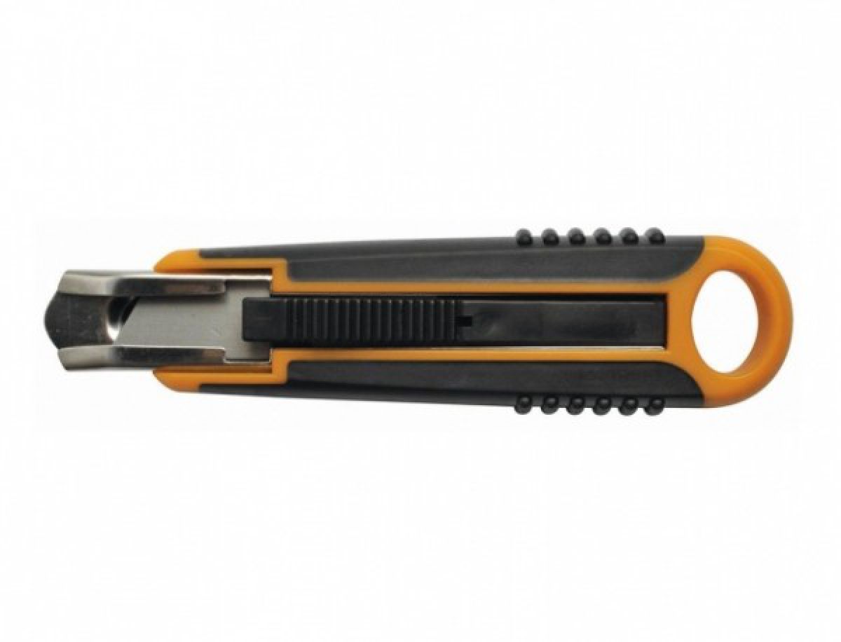 Profesionální odlamovací nůž s praktickým zasouváním břitů. Po dokončení řezu a puštění jezdce se čepel automaticky zasune do těla nože – snižuje se tak riziko poranění. Má pohodlný ergonomický gumový povrch rukojeti pro jisté držení, praktické očko pro zavěšení a speciální oboustranný břit ve tvaru lichoběžníku. Je možné též dokoupit náhradní břity Fiskars. Šířka břitu: 18 mm.
