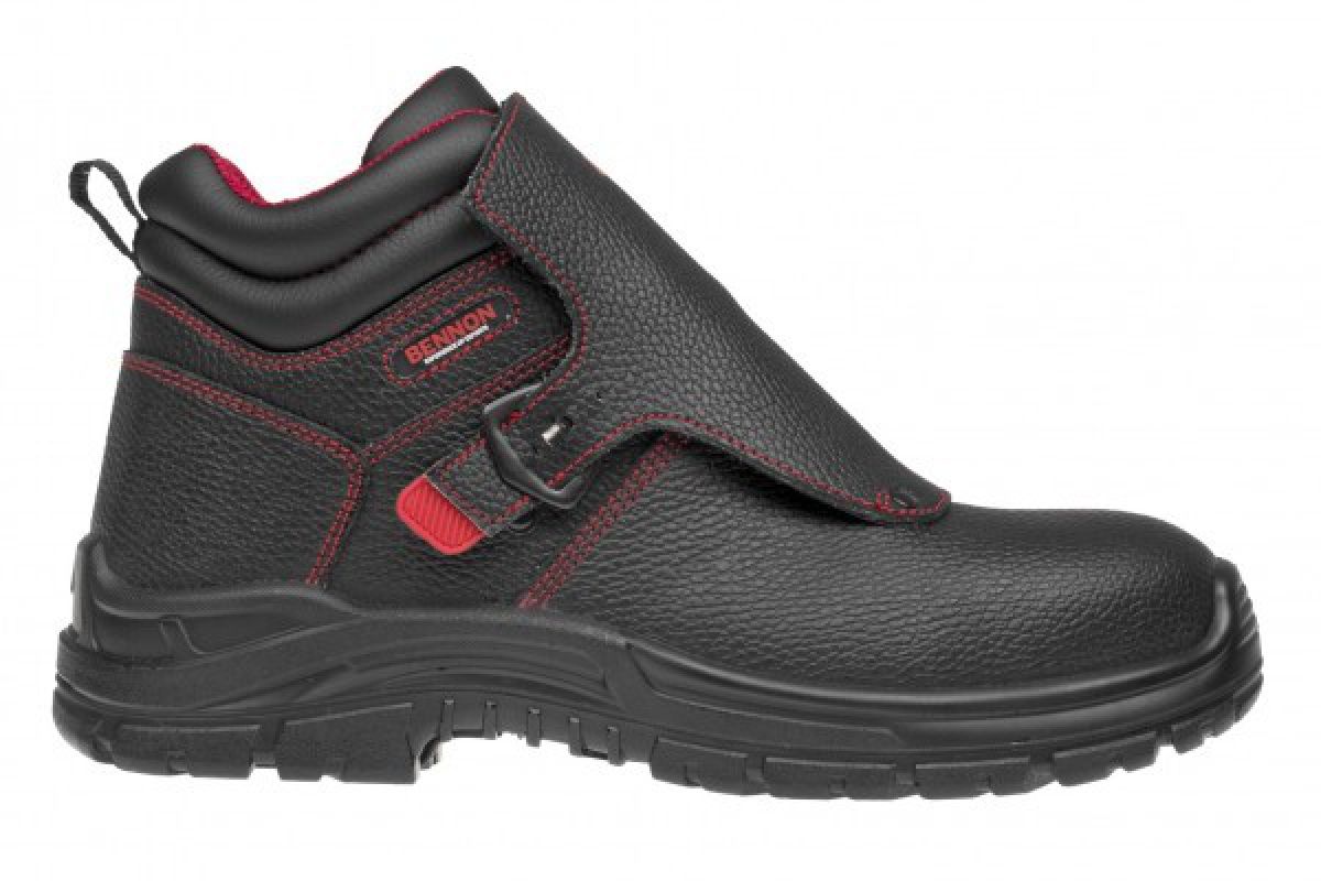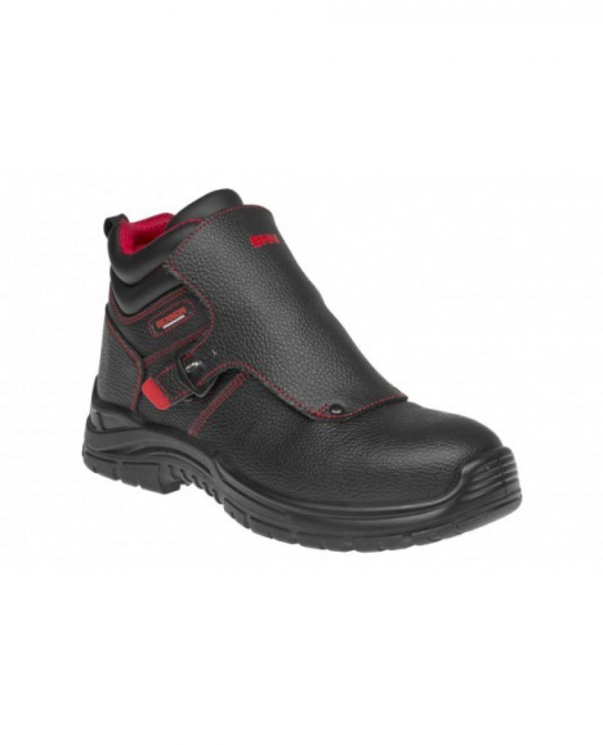 Specializovaná obuv pro svářeče opatřená přezkou pro rychlé vyzutí. Dvoukomponentní nástřiková podešev PU/pryž s protiskluznými vlastnostmi SRC odolává kontaktnímu teplu 300°C. Voděodolný vrchový materiál umožňuje použití obuvi v prostředí vyžadujícím standard S3.