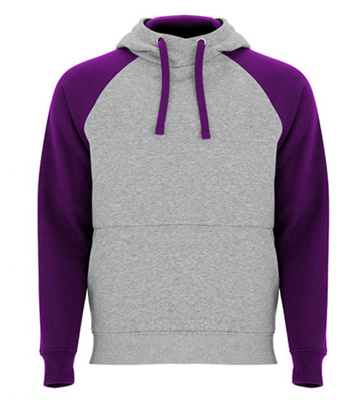 Pánská dvojbarevná mikina. Mikina má překřížený výstřih a kovové kroužky na šňůrky, kontrastní vnitřní kapuci a šňůrky, kontrastní rukáv raglánového stylu a klokaní kapsu. Manžety a spodní lem jsou s elastickým žebrováním 1x1. Odnímatelný štítek.