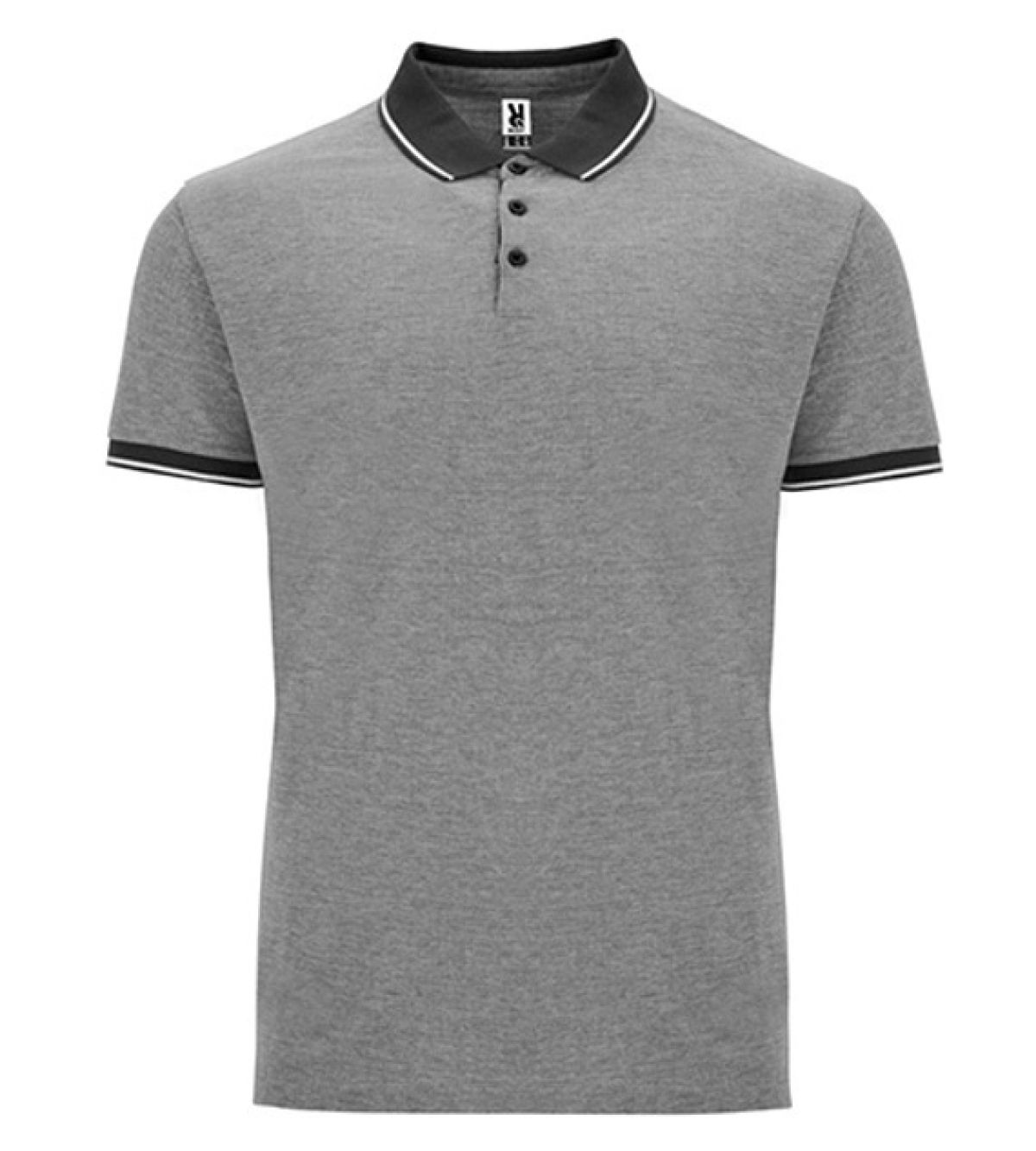 Žíhaná polokošile s krátkým rukávem. Límeček má kontrastní barvu a žebrování 1x1 a ozdobný kontrastní detail. Zapínání na 3 knoflíky, vnitřní léga v barvě límečku. Žebrované lemy na rukávech s kontrastním detailem. Spodní lem se zesíleným postranním rozparkem a ozdobným páskem. Střih zadního dílu je trochu delší než přední. Odnímatelný štítek.