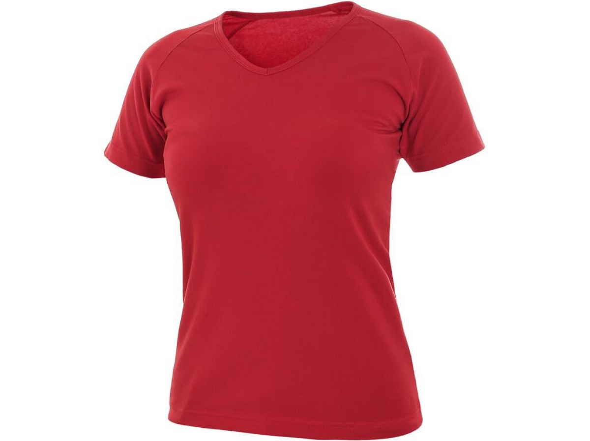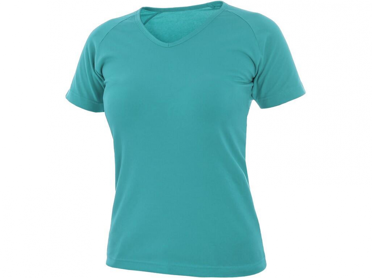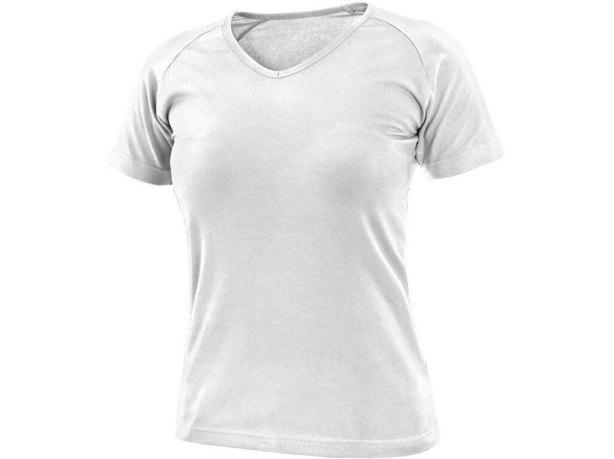 Dámské tričko s průkrčníkem do V, vhodné pro práci i volný čas. Krátký rukáv raglánového typu. Střih zvýrazňující dámskou postavu a elastan pro pružnost a dlouhodobé udržení tvaru. Finální silikonová úprava materiálu, která zajišťuje vyšší měkkost, rozměrovou stálost a omezuje žmolkovatění. Saténová vnitřní etiketa. Vhodné pro potisk a výšivku.