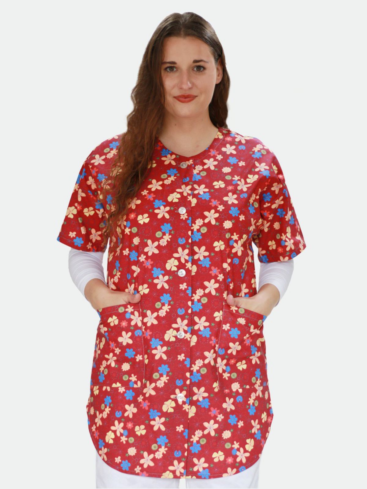 Dámská šatová zástěra Dana se 3/4 délkou. Zástěra má krátký rukáv je celopropínací na knoflíčky a na bocích má 2 prostorné kapsy. Různé barvy
